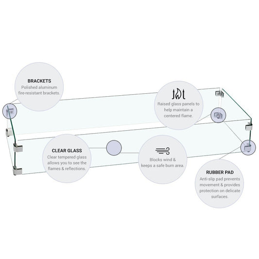 Rectangle Fire Table Glass Wind Guard 37 x 19