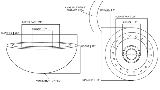 Prism Pentola 3 Concrete Fire Pit Bowl (Enclosed Propane Unit)