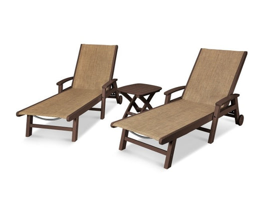 Polywood Coastal 3-Piece Wheeled Chaise Set