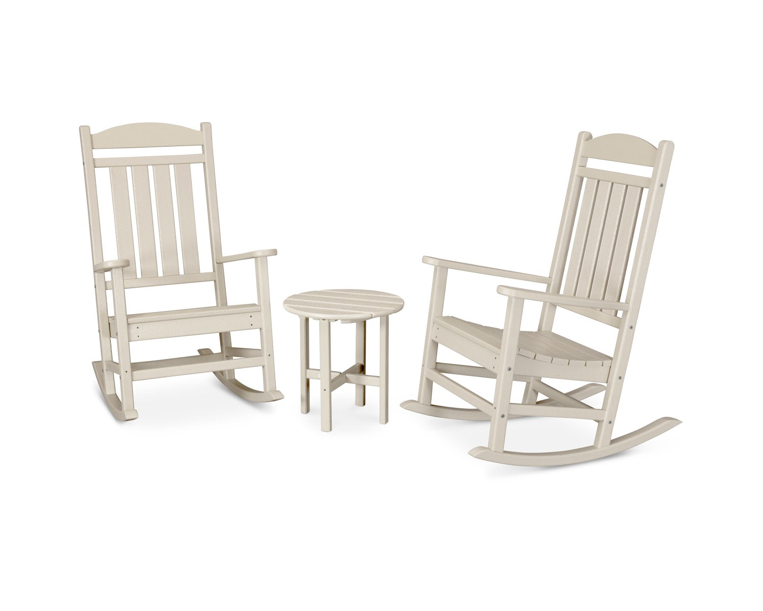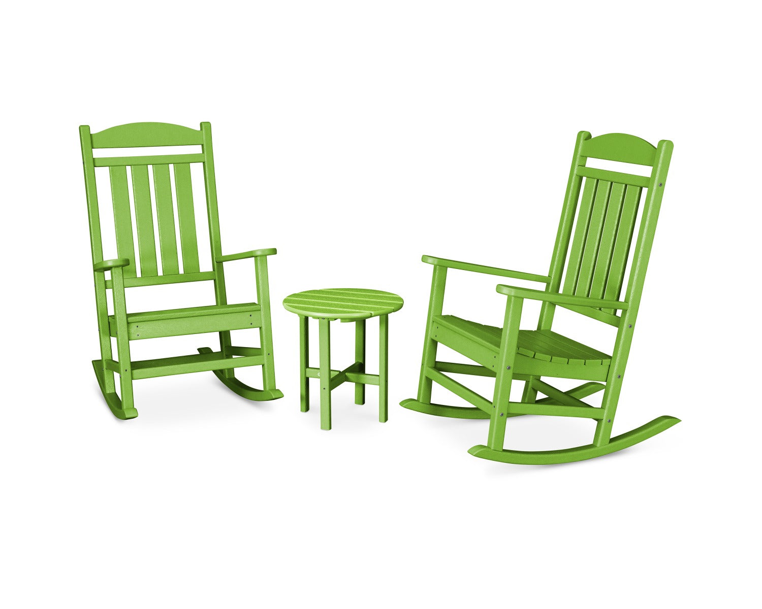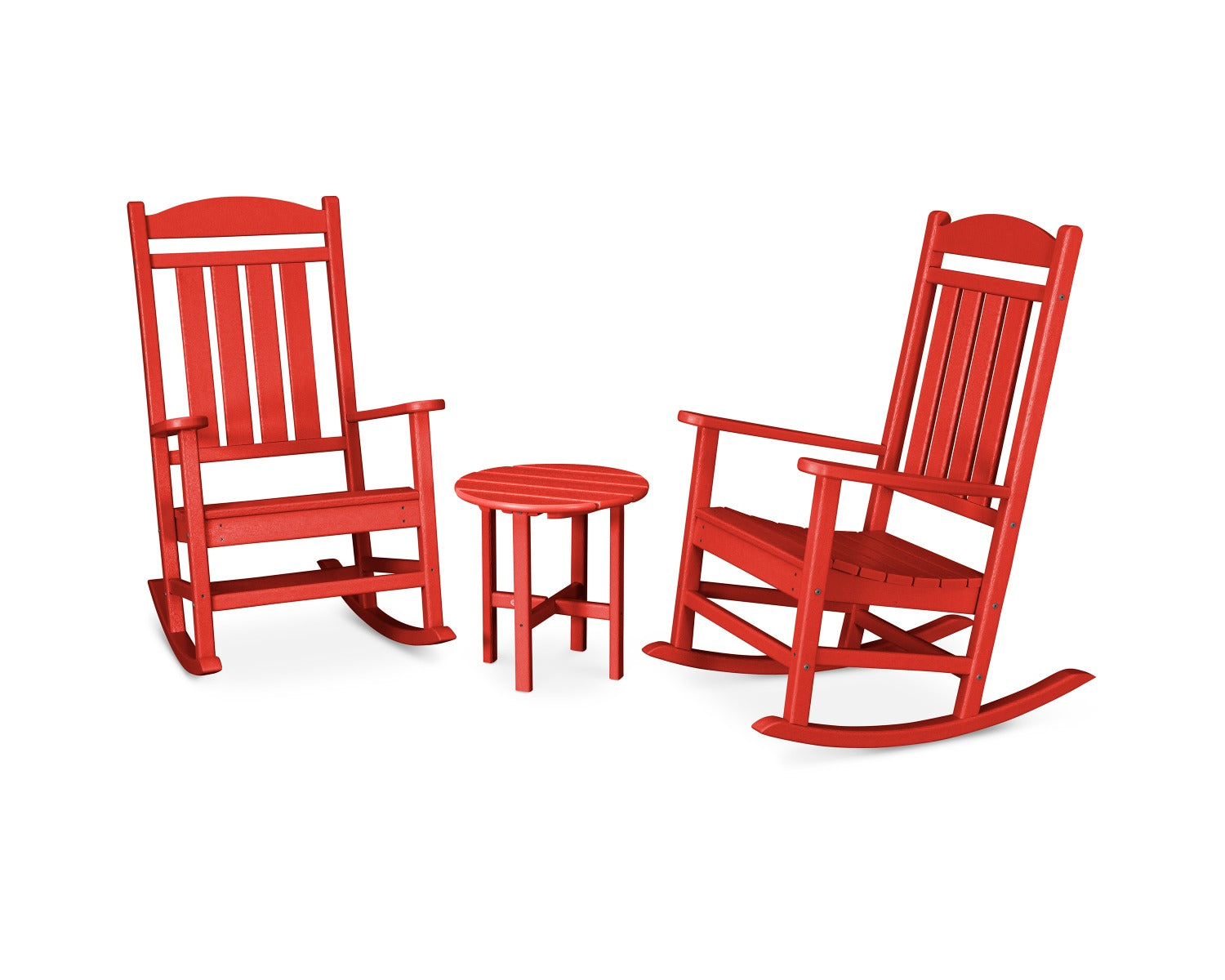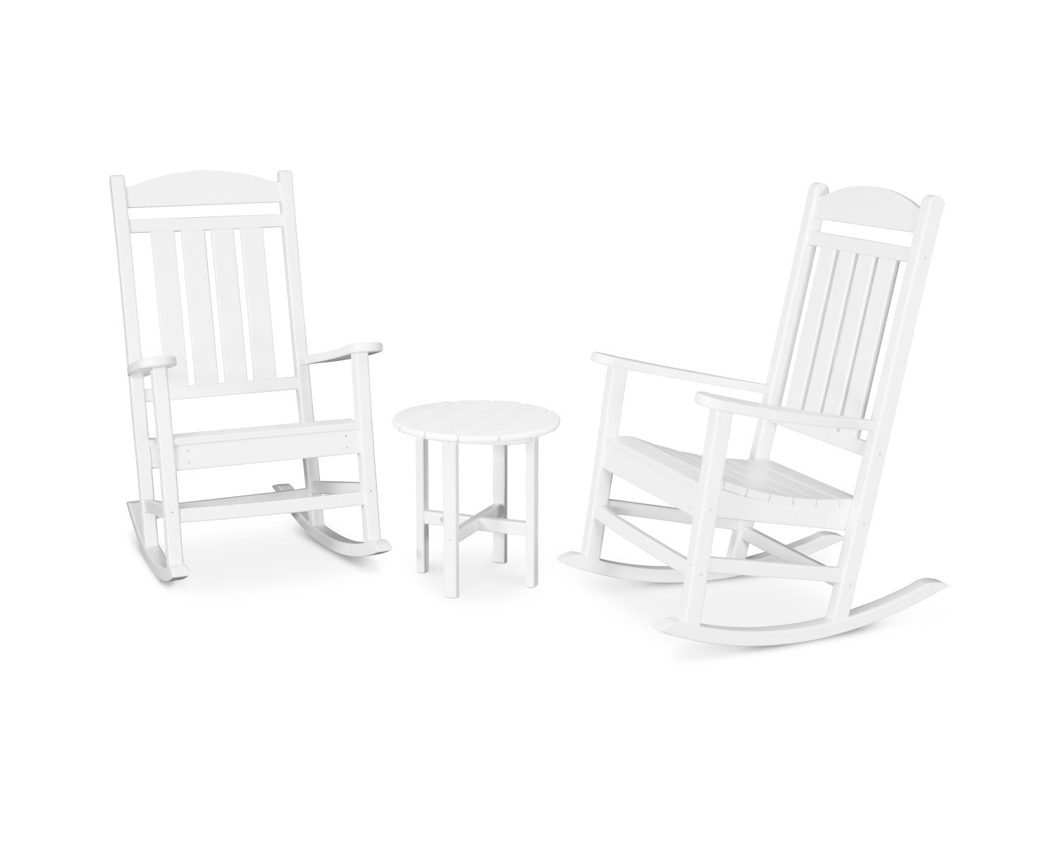 Recognized for its timeless style, the POLYWOOD Presidential Rocker has the look of a highback chair with the comfort of a contoured rocking chair. We've paired two of these rockers with a Round 18" Side Table, and together this set is the ideal seating for your porch or patio.