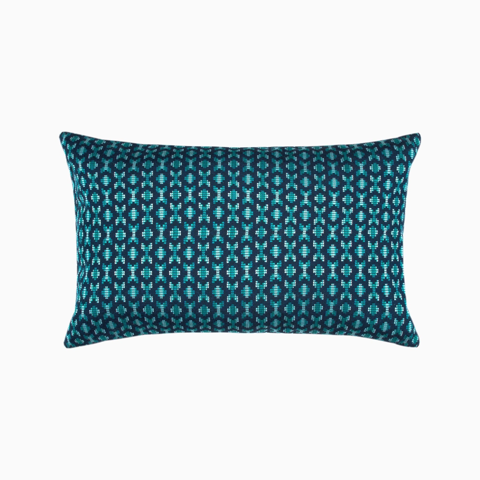 The Alcazar pillow combines the inspiration of Aztec design with a subtle ombre band of color in a small scale pattern. Woven from 100% Sunbrella yarns, this pillow resists mold, mildew, fading, and staining, for pillows that will last season after season.