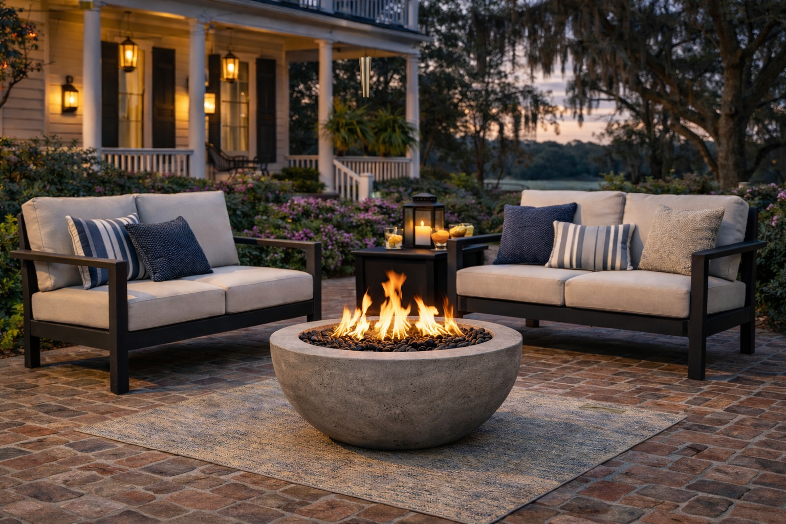 All Signature concrete fire tables weigh 200-650lbs depending on the model. The fire table is delivered “curbside” via LTL freight delivery meaning the carrier will drop the table at the curb or base of your driveway. It will require the assistance of at least 2-4 people or more to move the table and install it. Please plan accordingly as All Backyard Fun does not provide any further assistance of the installation of these fire tables.