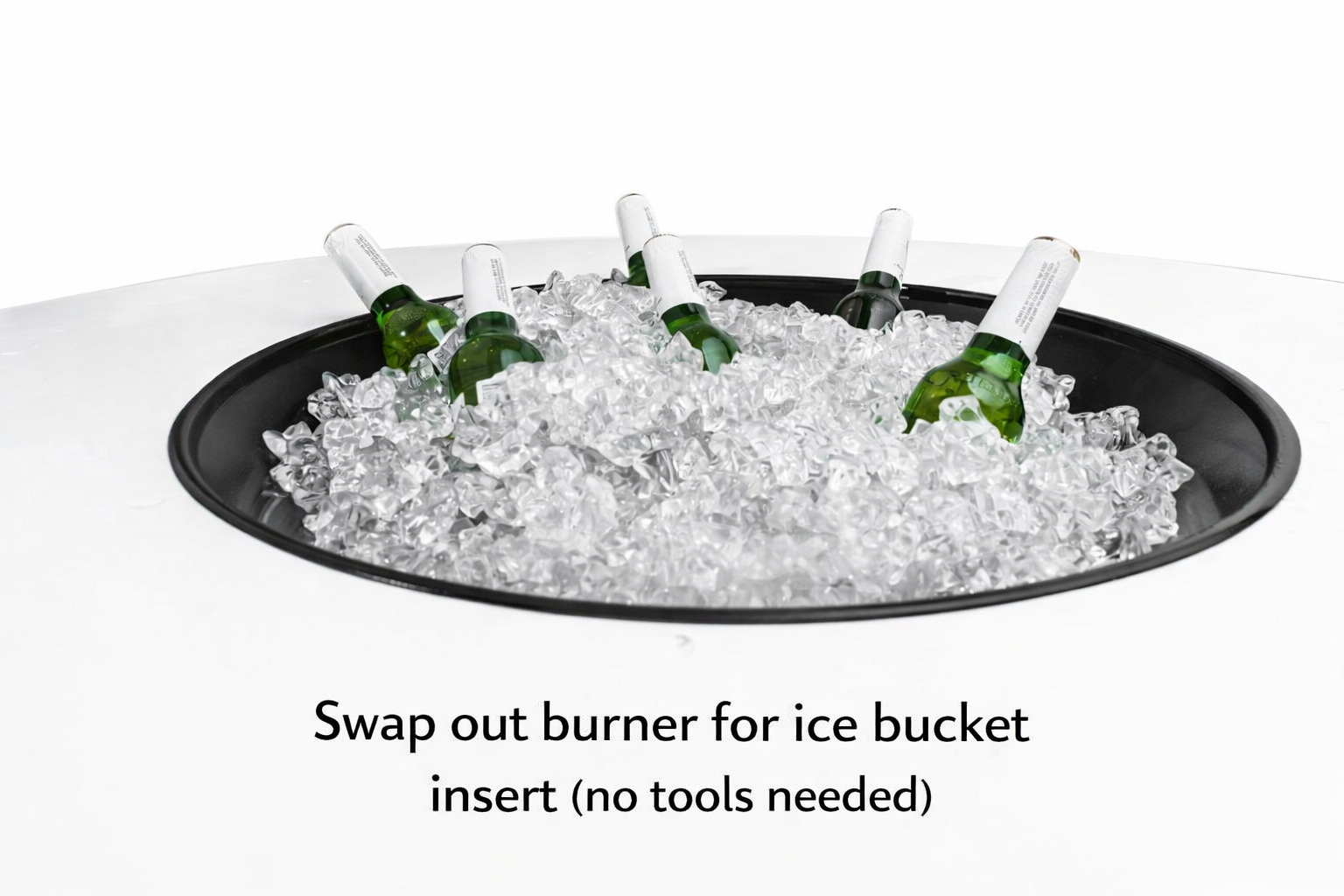 Introduce the Glacier Stone Oriflamme Fire Table - an exquisite addition to our premium collection of fire tables. Its sleek white finish makes it a standout piece that will elevate your outdoor space both in style and functionality. Made with Oriflammes durable fiberglass-reinforced quartz concrete blend, this round gas fire pit tabletop has undergone rigorous testing for over a decade to ensure it withstands the test of time.
