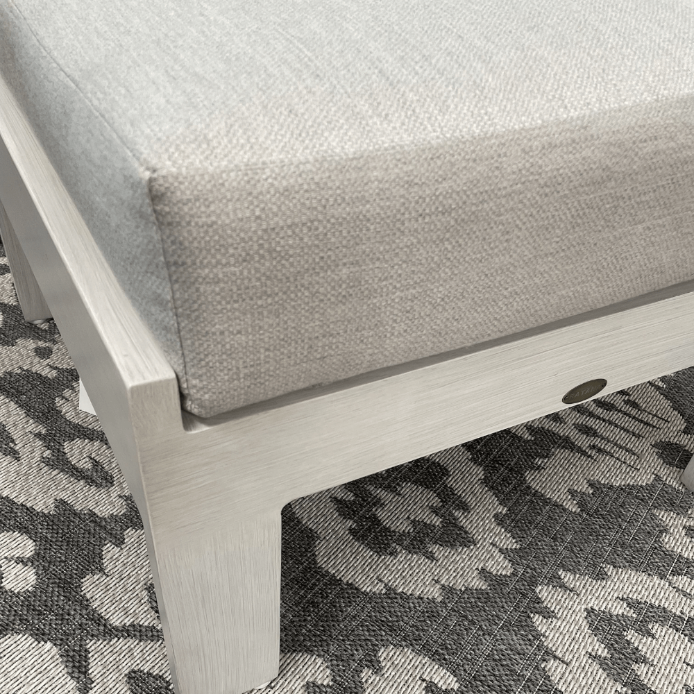 This sleek, uniquely shaped, slanted high back masterpiece, gives a striking contemporary flair with an upscale appeal. Featured with rustproof extruded aluminum frame and brushed scratch resistant finish in sophisticated White Wash. Coupled with deep plush cushions and extra back frame support. Park Lane offers extraordinary comfort which sets the ultimate relaxing tone for friends and families.