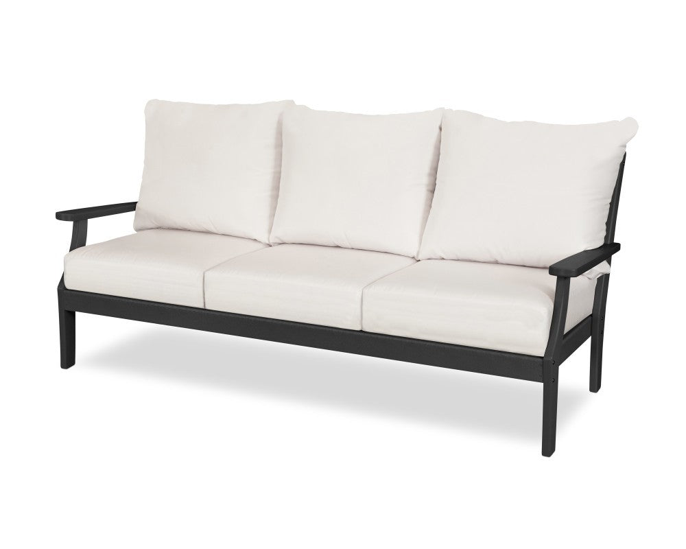 The Braxton Deep Seating Sofa seats three and pairs comfort and style with soft pillow back cushions and a charming cross-back design. This all-weather sofa strikes the perfect balance of straight lines and curved details for a style that is both traditional and timeless. Group with a coordinating Newport End and Coffee Tables or combine with the rest of the Braxton Collection to create a cohesive outdoor space.