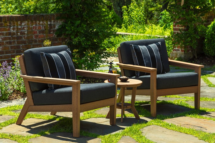 This Dex chair will arrive in the pictured Heathered Teak Enviro Wood and Canvas Black Sunbrella Fabric